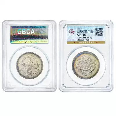 (Gongbo XF45) Yunnan Province made Laolong semi-round silver dollar border circle English Guangxu Yuanbao colorful paste