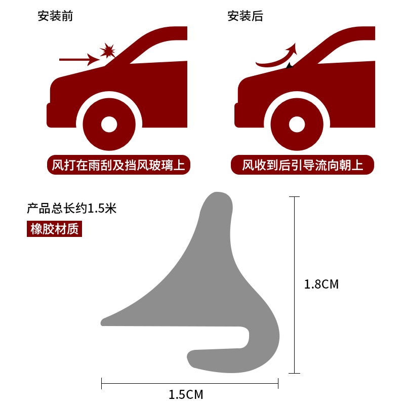 Hood wind noise spoiler strip Rear edge of the hood Front windshield Bottom anti-wind noise anti-insect diversion strip