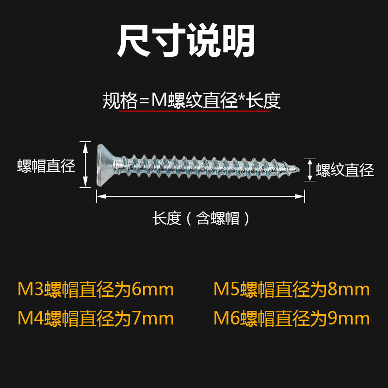 Self-tapping screws Flat head cross countersunk head pan head Large flat head galvanized blue and white zinc lengthened M4 boxed woodworking screws