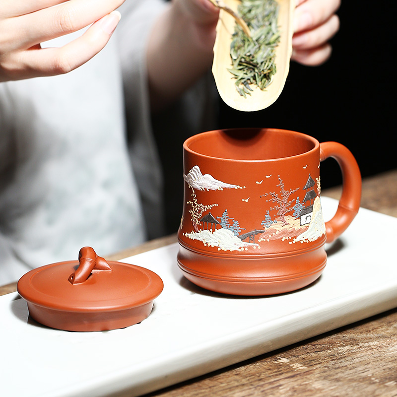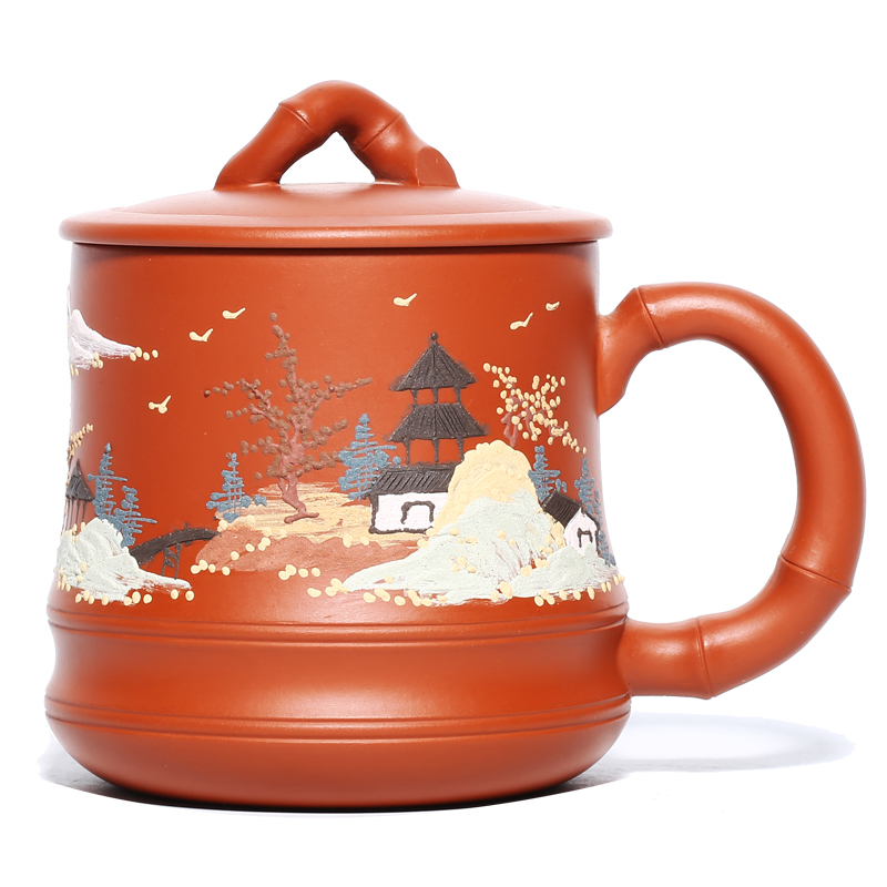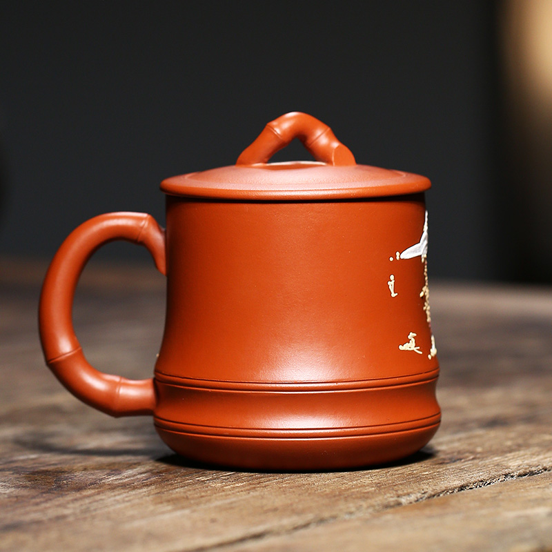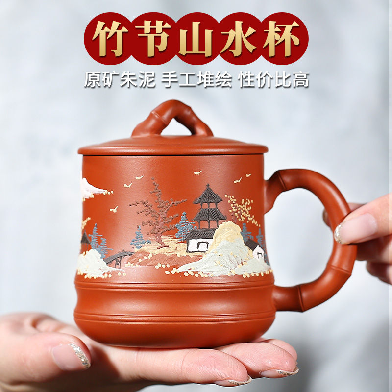 Yixing Purple Sand Full Handmade Pile Drawing Small Capacity Raw Mine Zhu Clay Bamboo Festival Mountain Water Cup Men's Office Tasting Cup