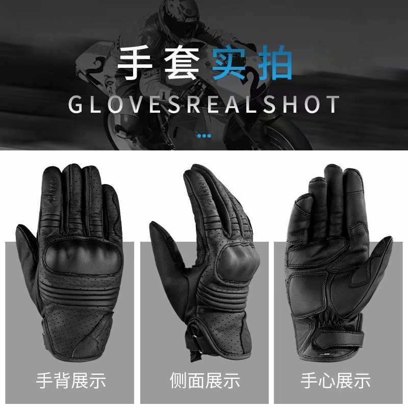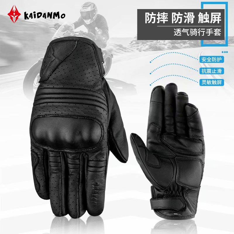 Caidan Motorcycle Ride Leather Gloves Locomotive Retro Summer Breakfast Knight Anti-Fall Finger for Men and Women Sheep
