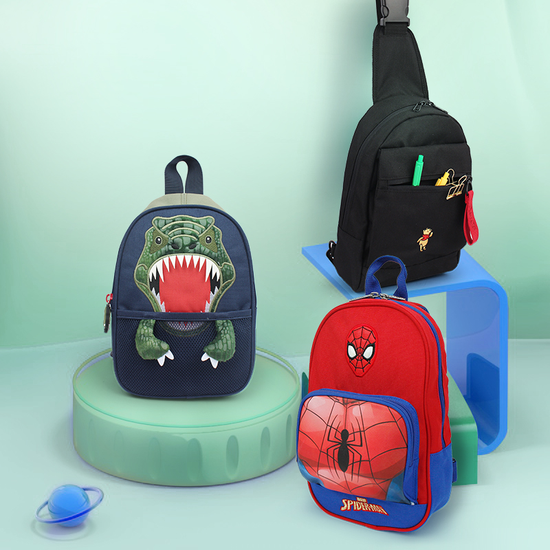 WH0487 shark back wearing chest bag DZ0021 dinosaur back wearing chest bag DS0197 Alice back wearing chest bag DS0196 small bear winnie back wearing chest bag