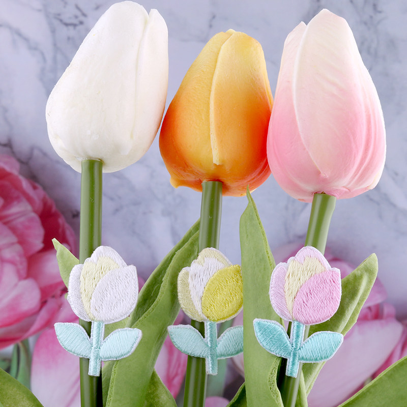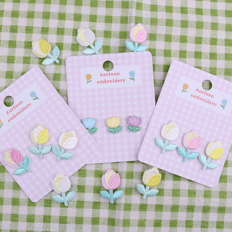 Tulip Embroidered Patch LONNGCHAMP Bag Coconut Shoes Hand Ledger Mobile Phone Protection Shell DIY Trim Cloth Patch Clothes Pants Breaking Hole Patch Zhang