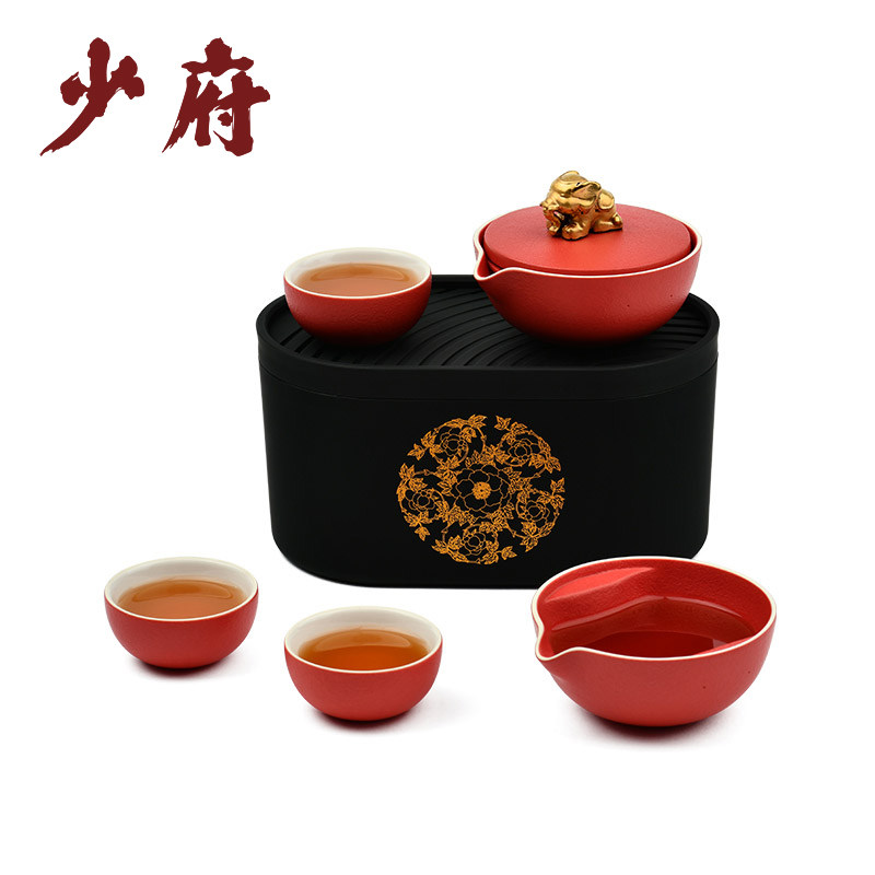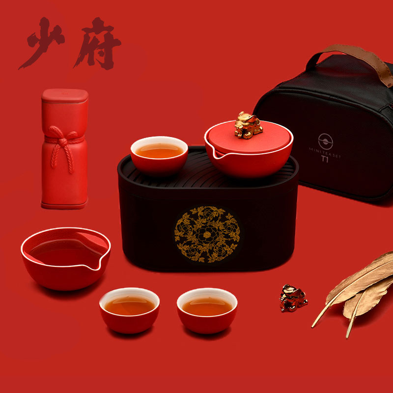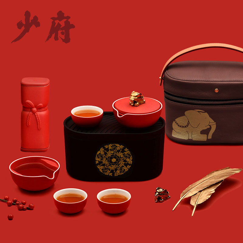 Auspicious red (rich and beautiful elephant) tea set , tea box , Oxford cloth hanging bag gem blue (rich and beautiful elephant) tea set , tea box , Oxford cloth hanging bag