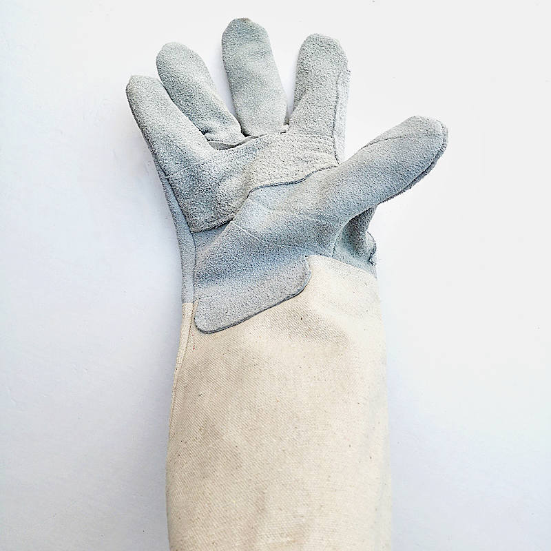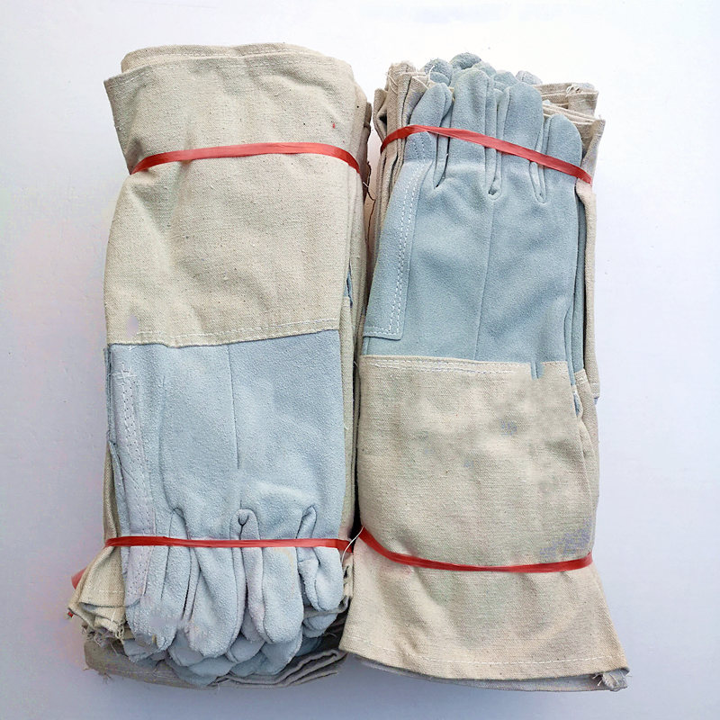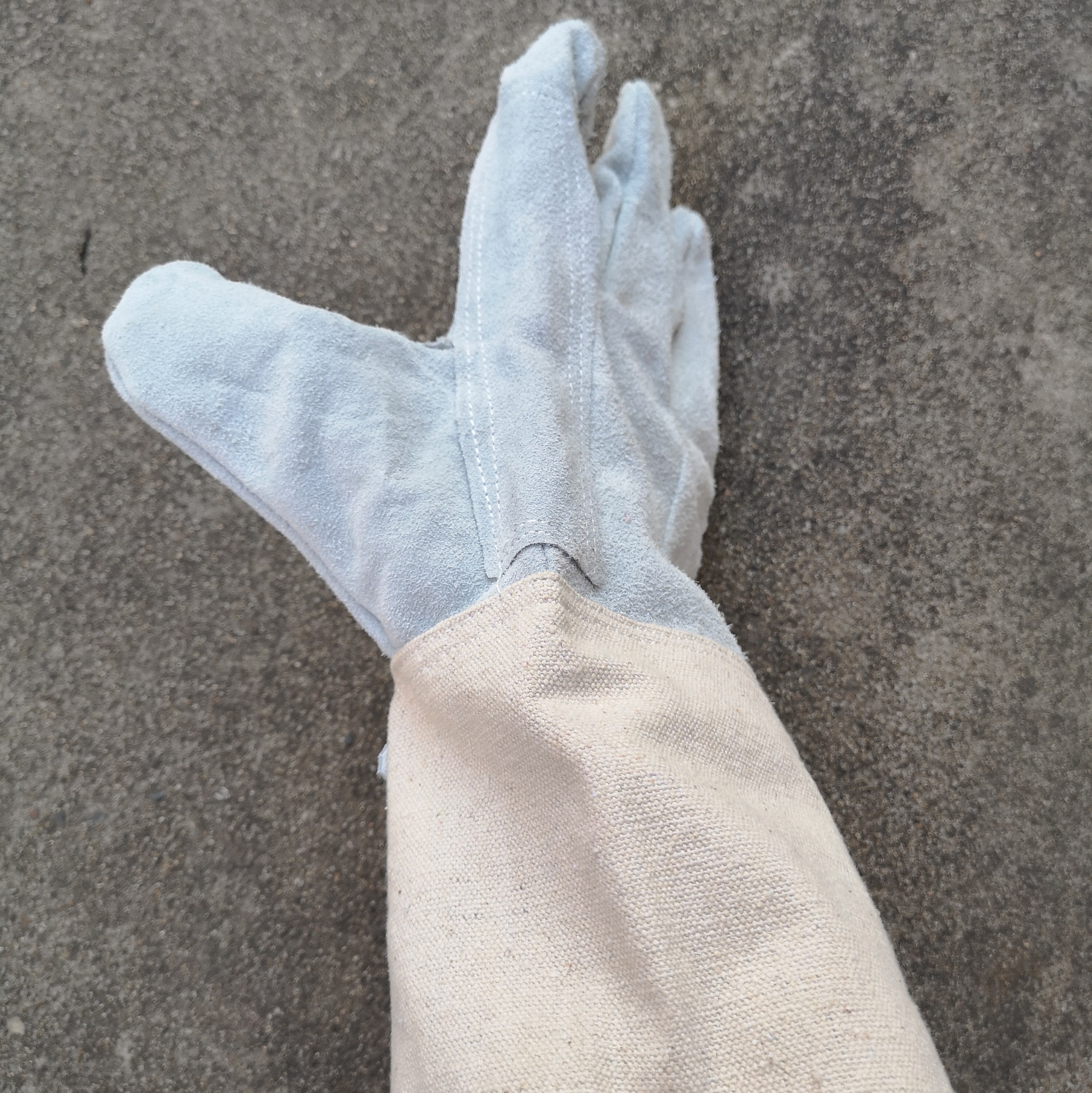 Canvas Pure Cow Leather Electro-Welded Glove Welt Welding Long Version Seamless Labor Protection Anti-Burn and Wear Thickening and Thickened Fire Protection Wire