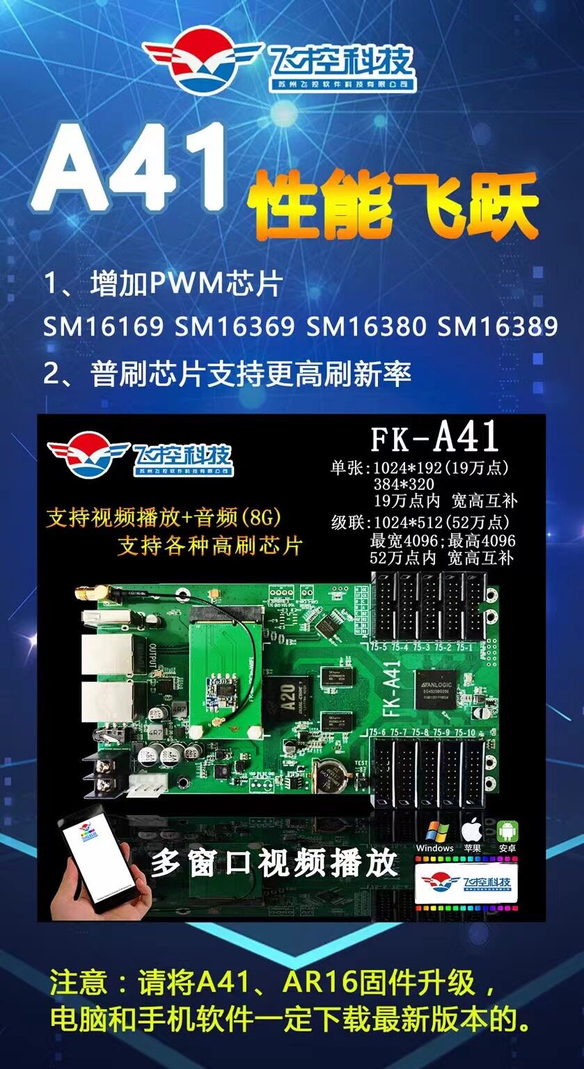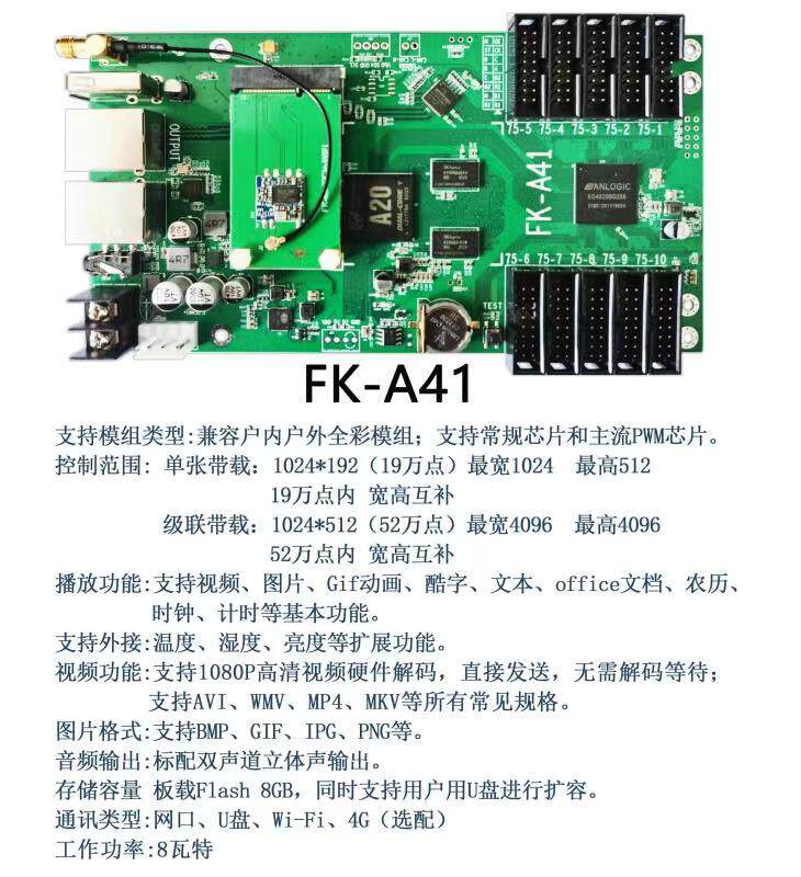 FK-A41 flight control video full-color control card mobile phone WiFi card wireless card asynchronous cluster video large screen card