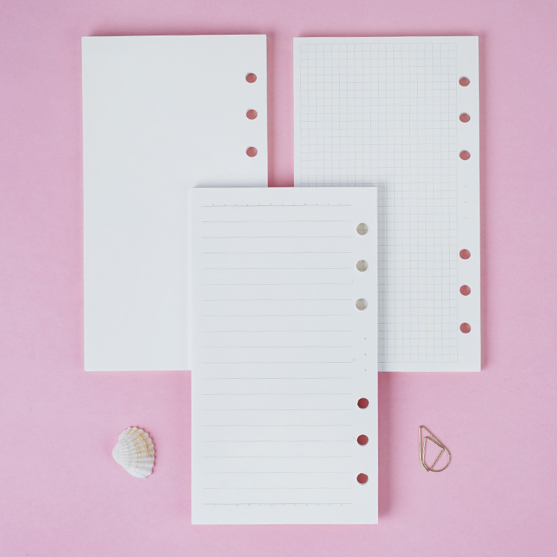 A6 Full Series Loose-leaf Inner Page Paper 6 Holes Handbill Notebook Subround Dot English Cheat Financial Box Crossbar Cornell Blank Day Week Scooters English Line Black Carcow Leather Replacement Inner Core