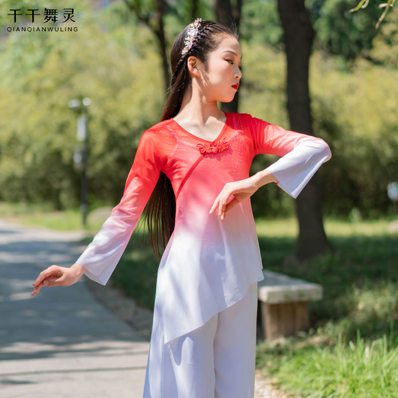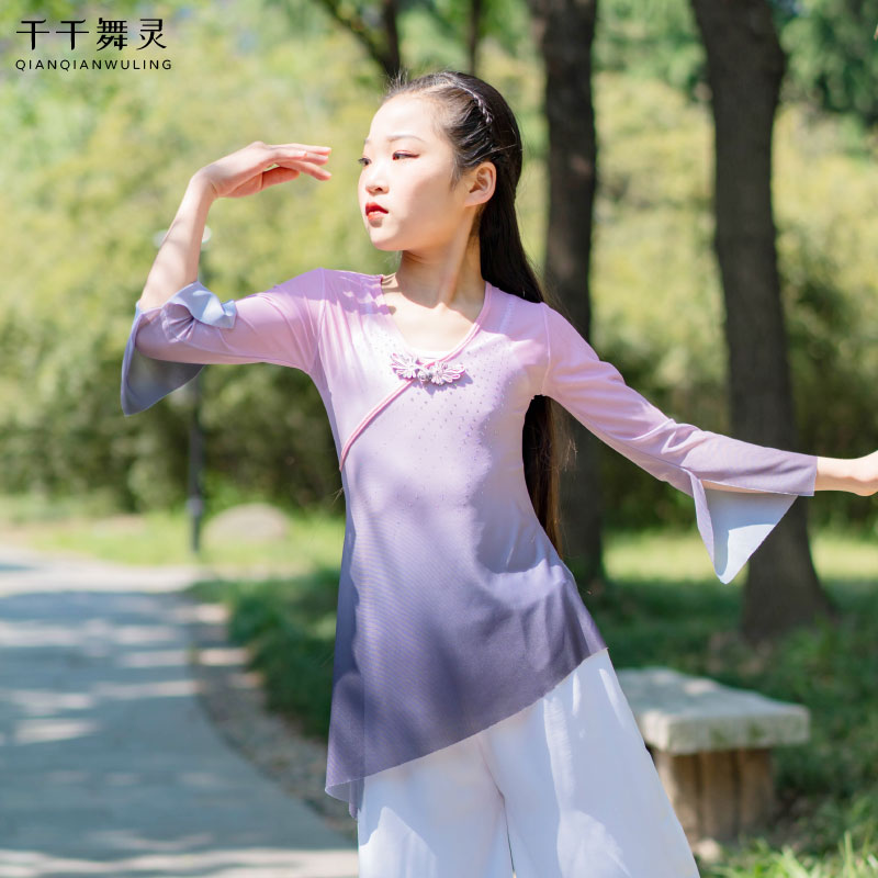 Children's classical dance costumes dance gauze girls practice clothes Chinese dance shape body rhyme mesh yarn folk dance