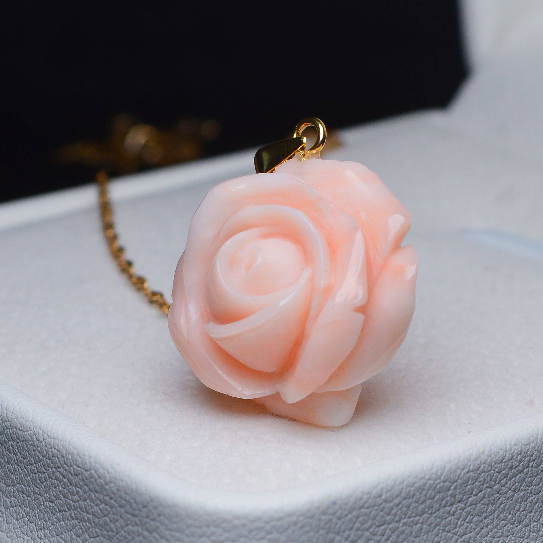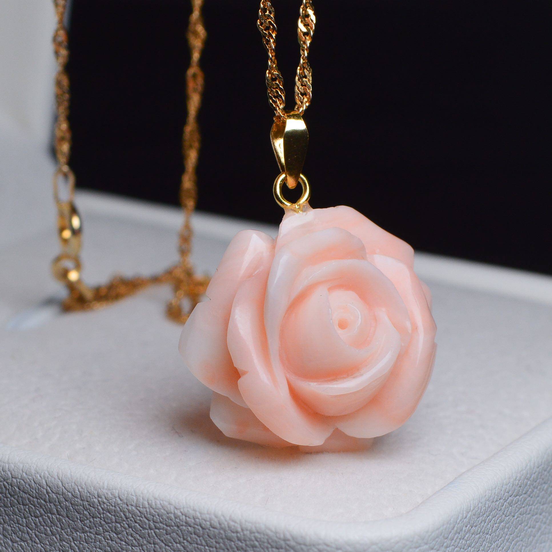 Huahua high-end jewelry Pink carved rose pendant