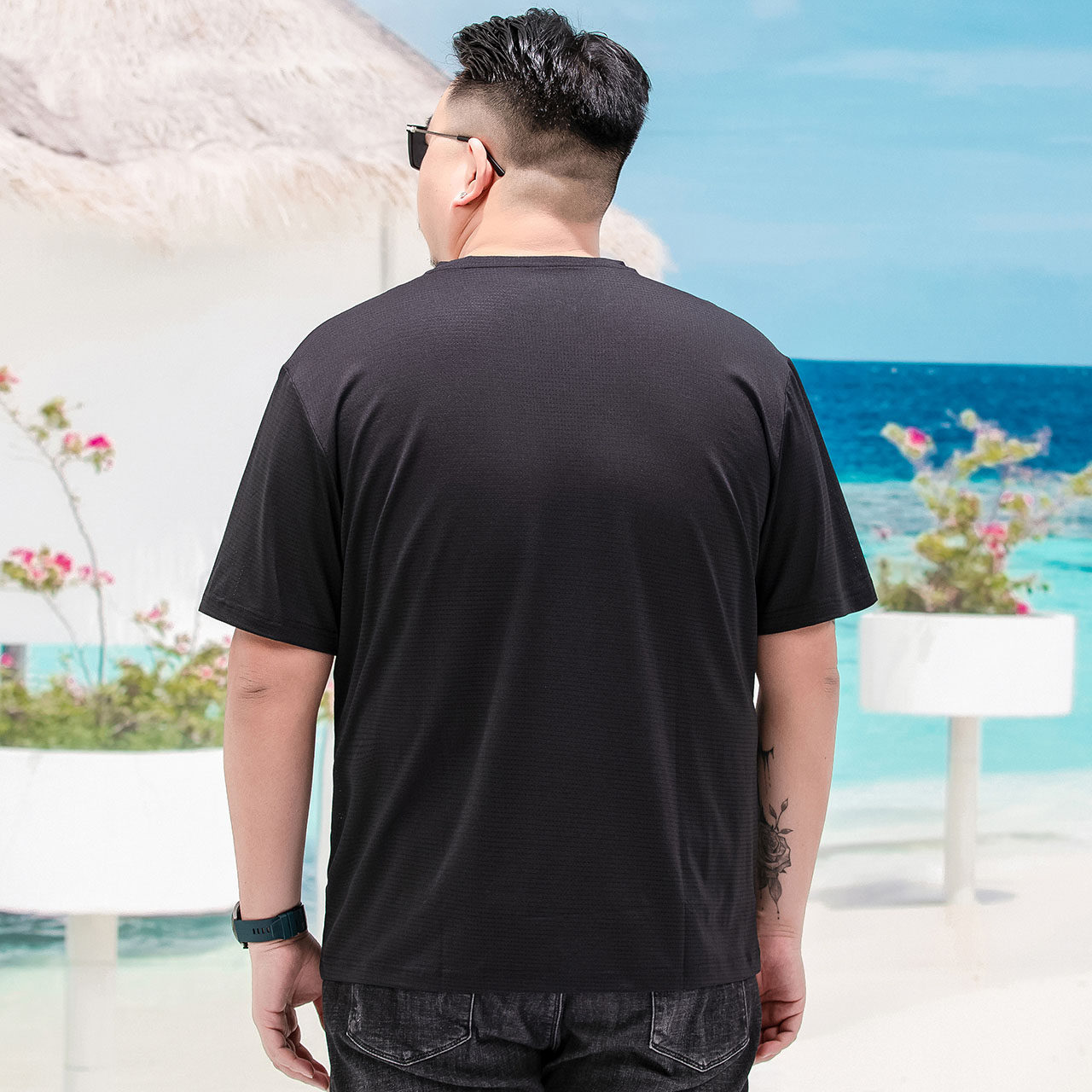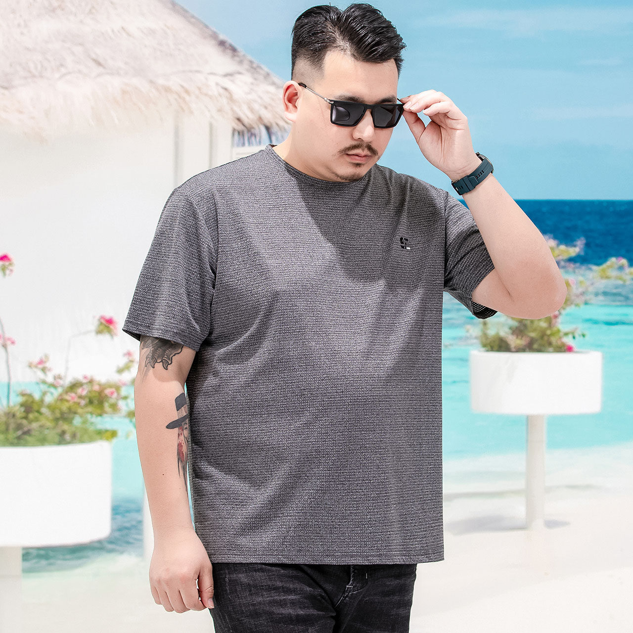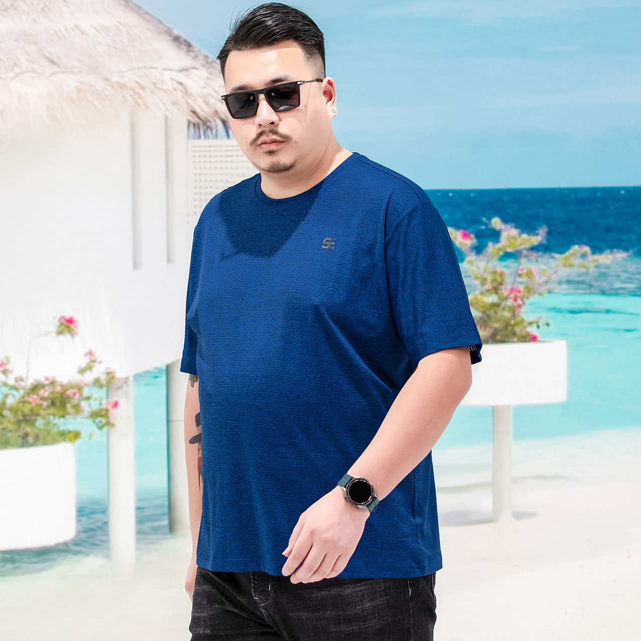 Short sleeve t-shirt male summer round collar casual speed dry clothes with loose gats up overweight and fatter ice silk cool blouse