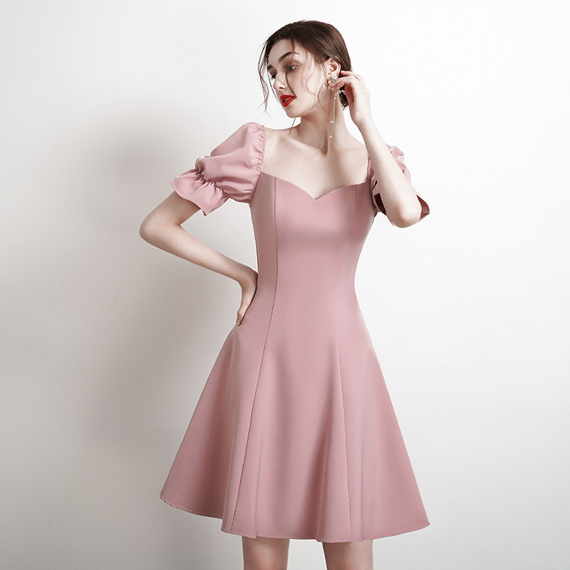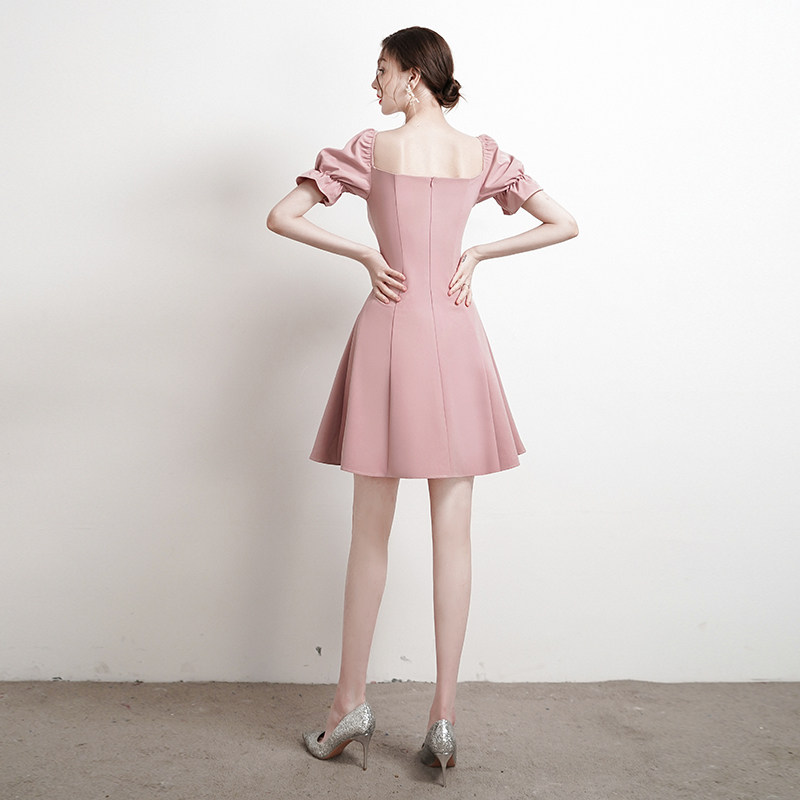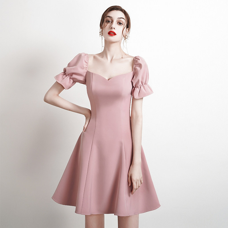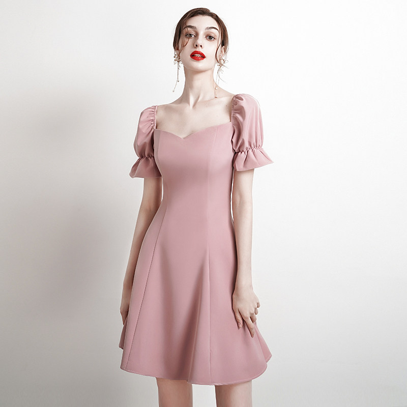 Small dress skirt pink bridesmaid dress engagement return home French dress daily dress usually wear summer light high-end