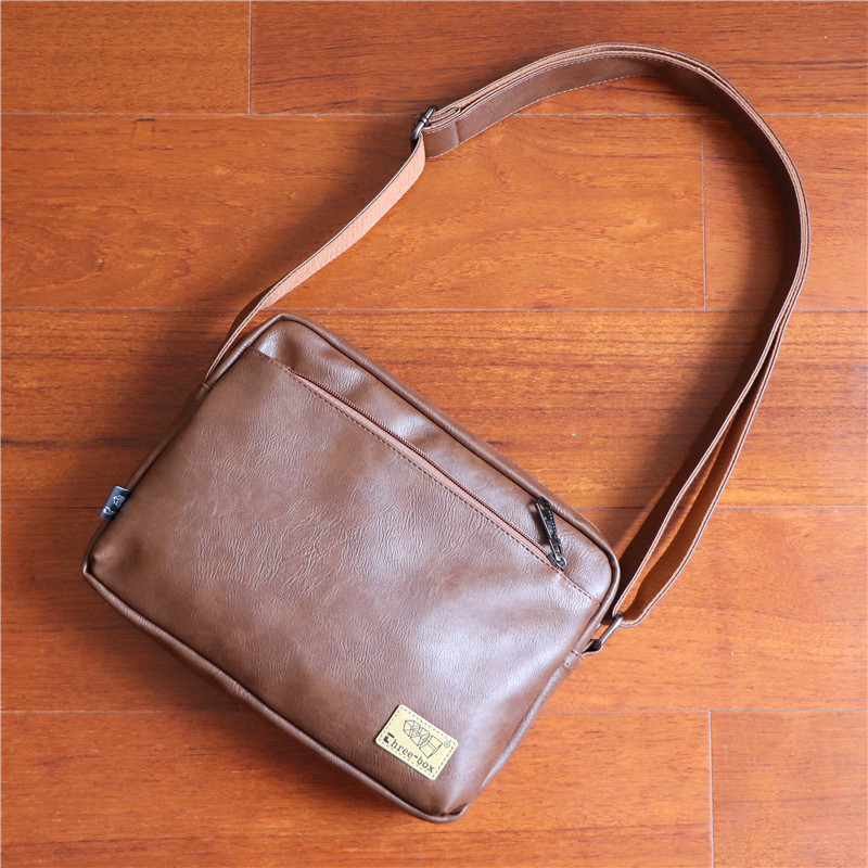 Threebox Tide Bag Japan Men's Single Shoulder Bag Youth Soft Leather Bag Cross Section Casual Twill Bag Student Bag