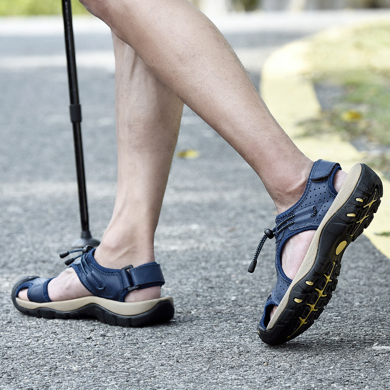 Men's shoes Summer breathable anti-foot Sweat sandals Men's leather Sport casual outdoor non-slip Soft bottom Baotou beach Shoe