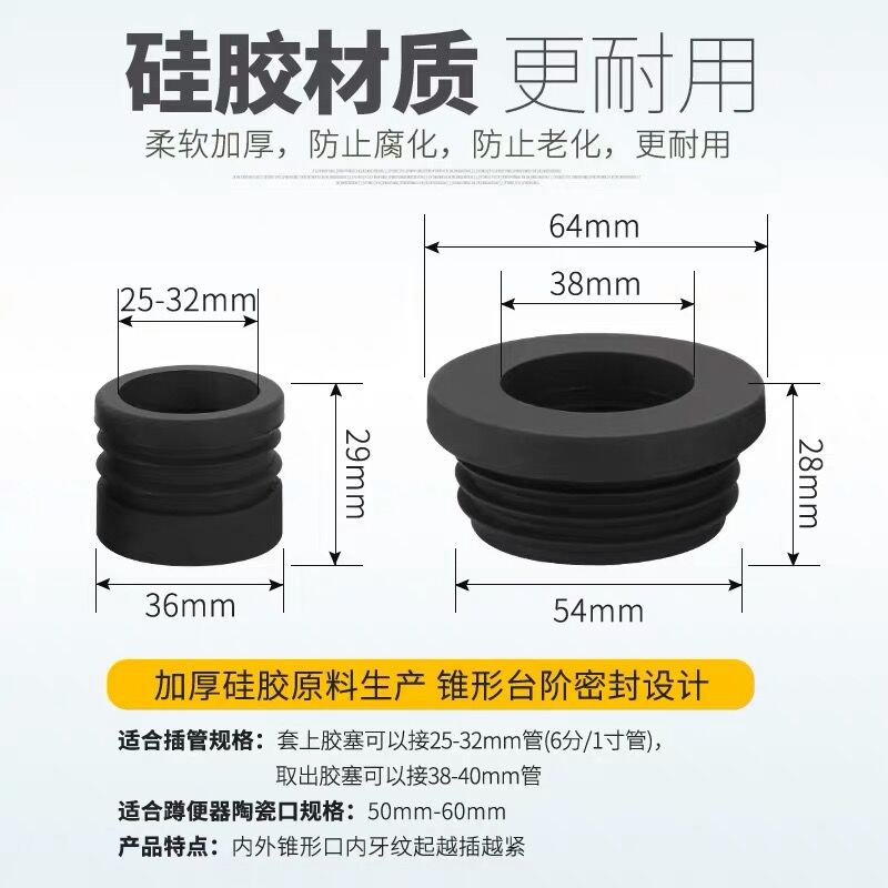 Double-hole squatting pan water inlet pipe connection sealing ring squatting pit water tank 1 inch pipe water inlet rubber ring 32 40MM picer