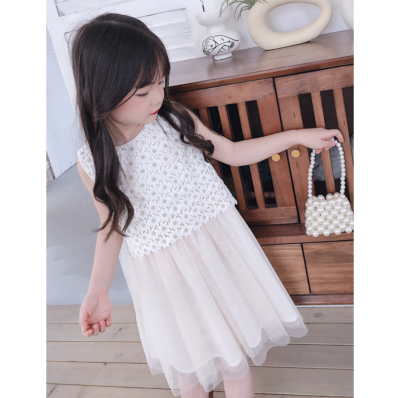 Girl Princess Pompeo Gas Dress 2023 Summer New White Dress Child sleeveless vest dress Fairy