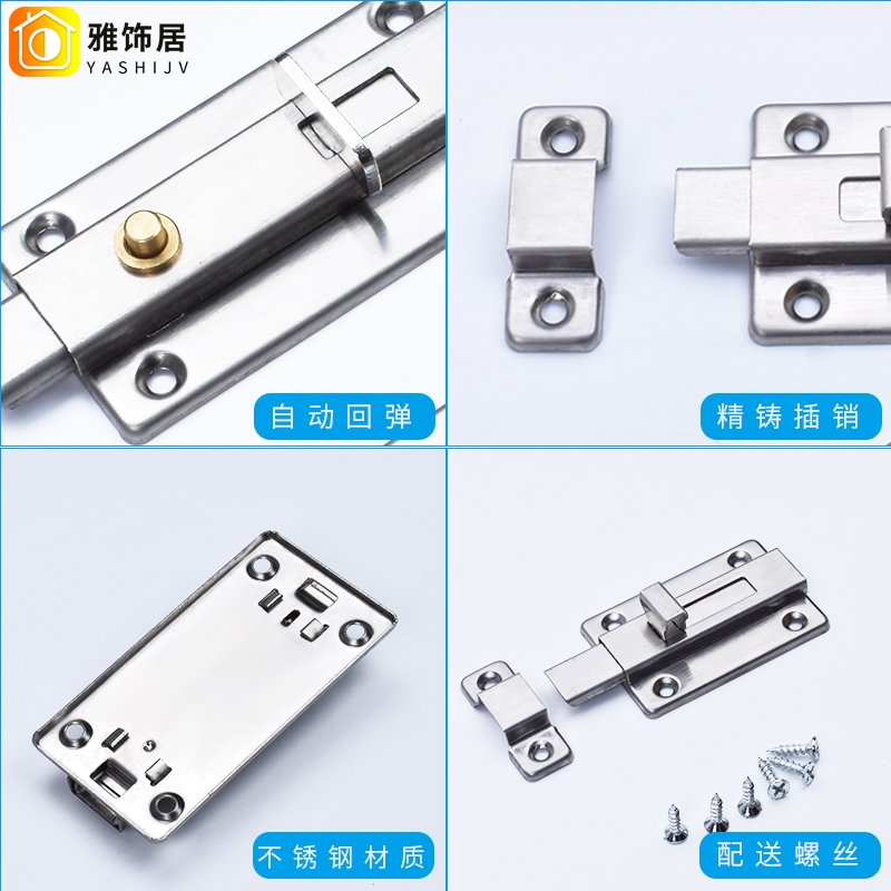 Automatic Spring Min Bolt Stainless bolt Room door Dressing Room Wood Door Ming Fit Double Head Bolt Tether Widening Thickened