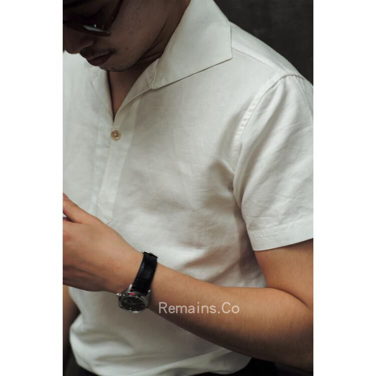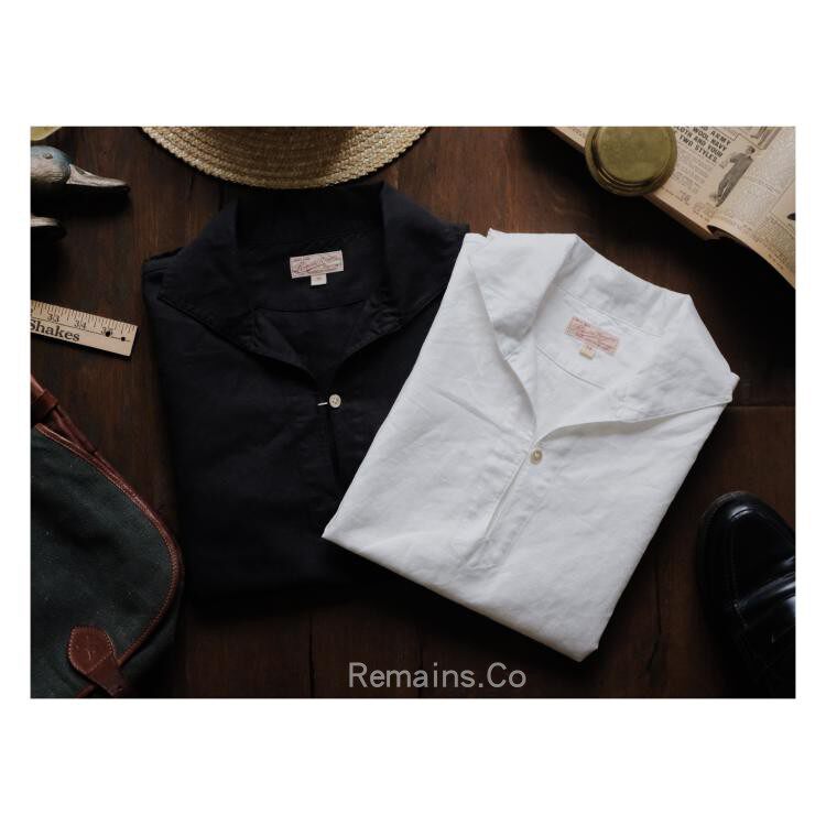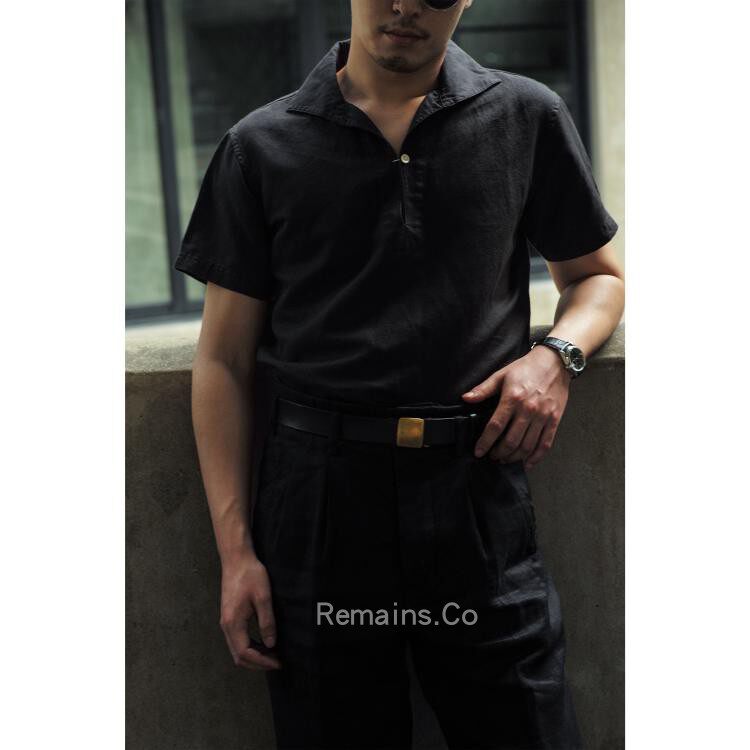 Remains Japan imports cotton linen blend navy collar jacket head retro sailor short sleeve elegant shirt man 's