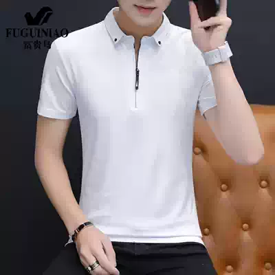 Rich bird pure cotton polo shirt men's summer new lapel slim Korean version all-match casual men's short-sleeved T-shirt tide