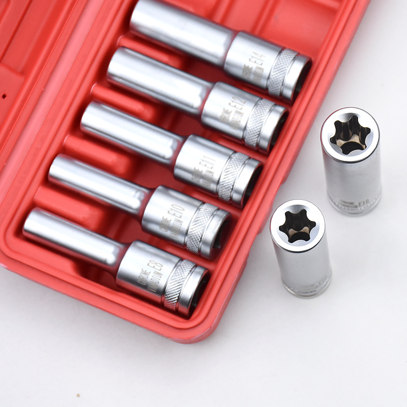 Lengthened E-type sleeve suit 10 pieces of large flying inner plum wrench flower type suit 1 2 inner flower corner splined sleeves