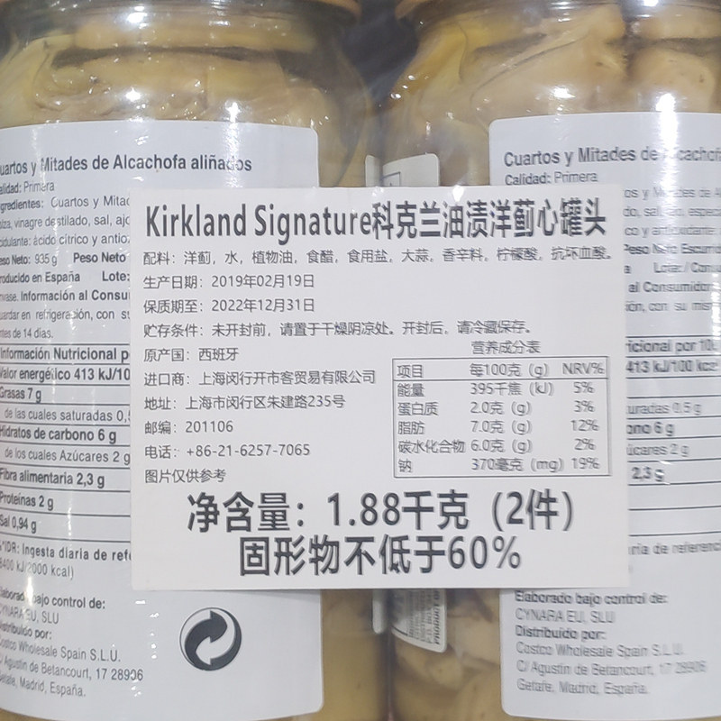 Shanghai costco United States Kirkland signature Kirkland oily artichoke heart canned 940G