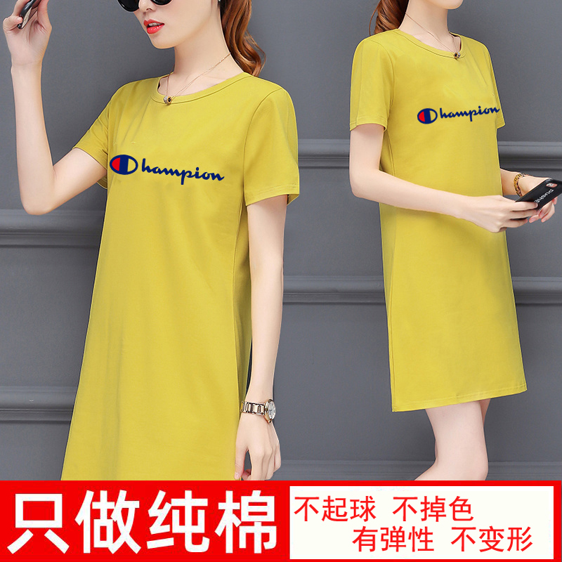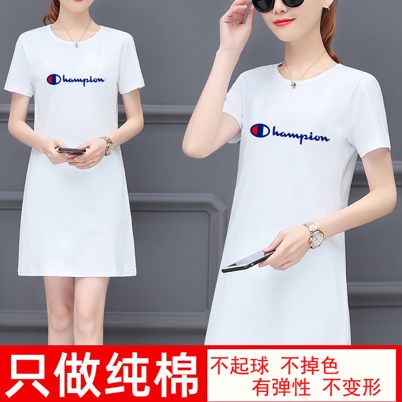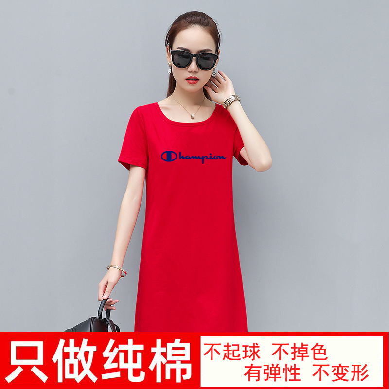 European goods cotton short-sleeved t-shirt women's 2022 summer mid-length top half-sleeve large size printed T-shirt loose