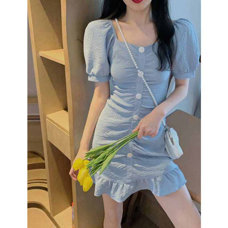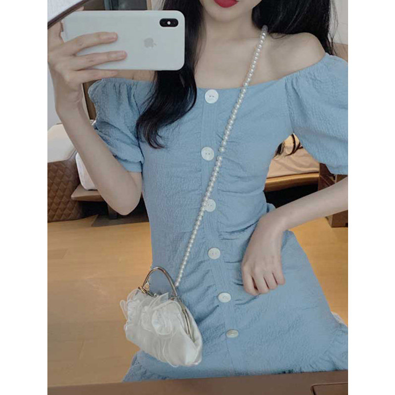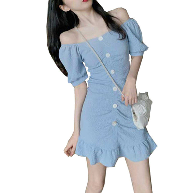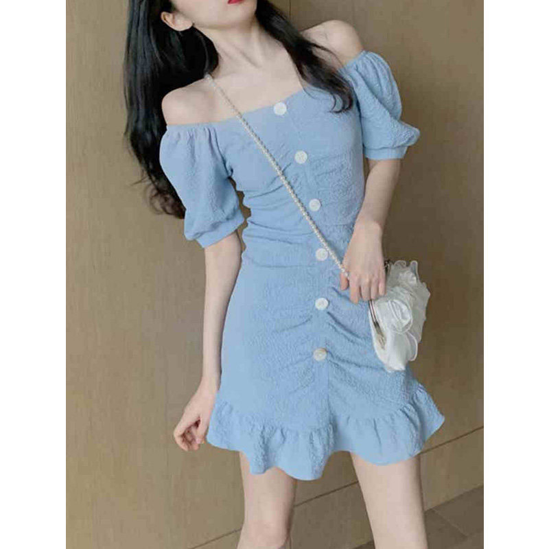 2021 Summer new women's dress Large size Shoulder Bubble sleeves Dress Temperament goddess Fan clothes fishtail Ocean dress