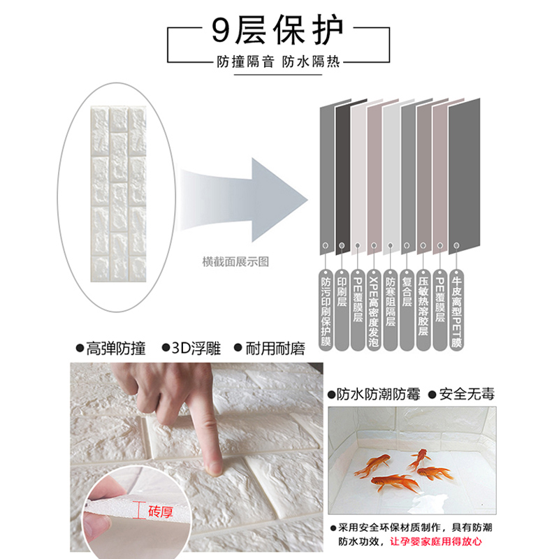 3D three-dimensional wall sticker thickened anti-collision brick pattern wallpaper Wallpaper self-adhesive household living room background wall waterproof mildew sticker