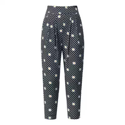 Ice silk Capri pants women Summer thin elastic high waist loose print Harlem pants five-point pants big size mother pants summer