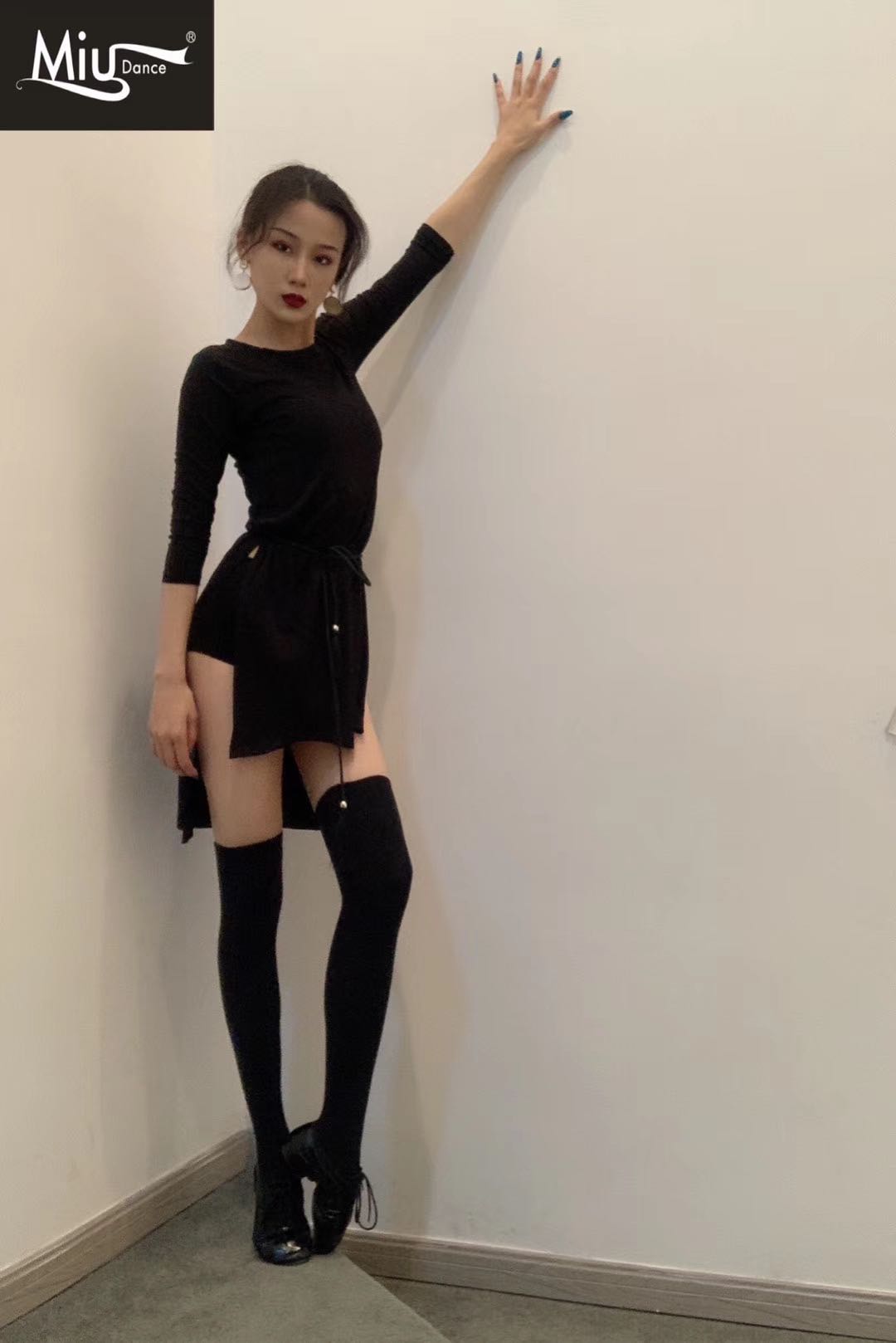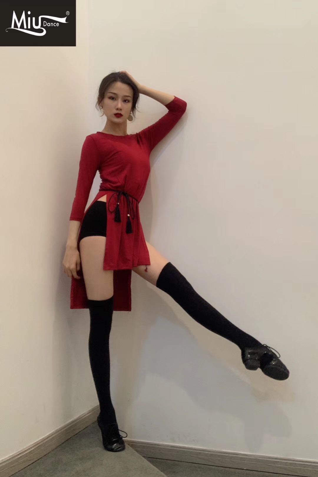Miu 022 Latin dance suit basic practice utilité professional 100 hitch slim display leg length high open fork sending picture with belt
