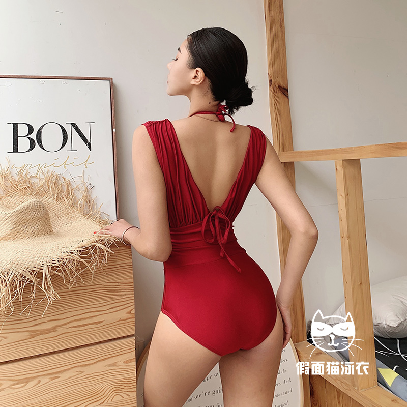 Masquerade Cat Wine Red Temperament New Swimming Suit Feminine Small Chest Gather Up Cover Belly Slim Hot Spring Bikini