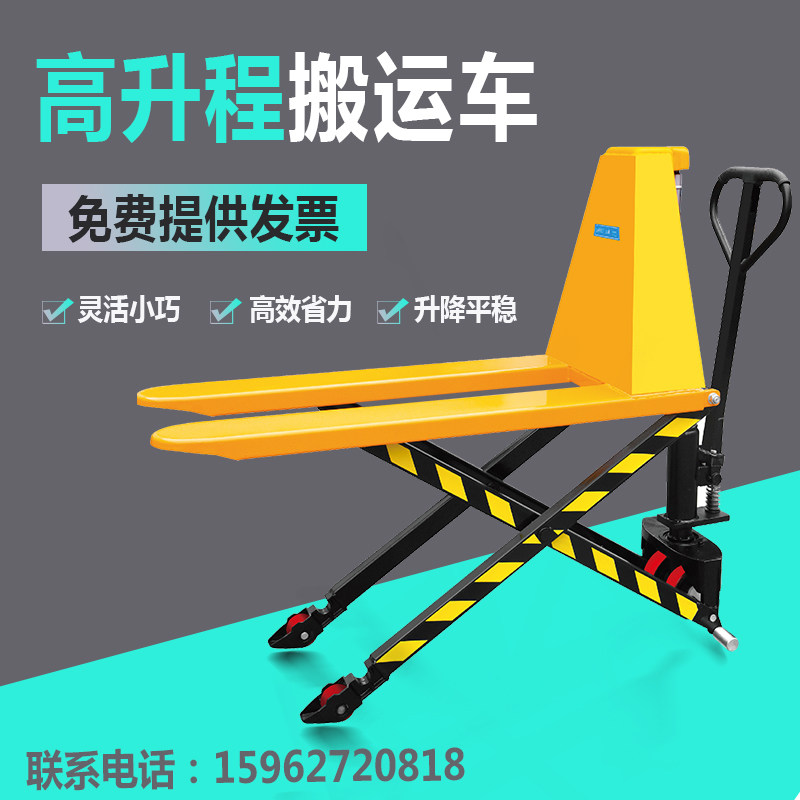 Scissor type High Lift Truck 1 ton manual hydraulic ground cattle 1 5 tons high lifting electric lifting platform forklift