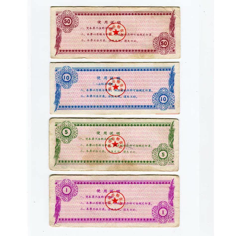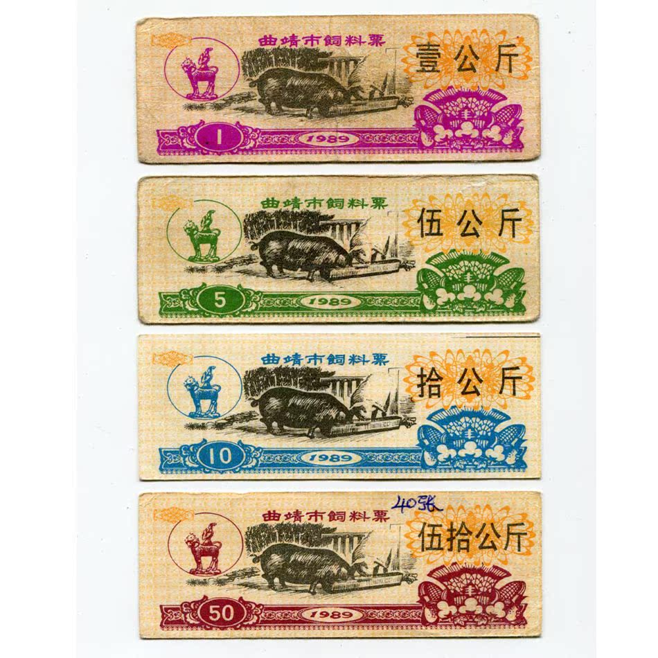 (Fidelity) Old Ticket 1989 Qujing Feed Ticket in Yunnan Province Full Set 4 original coins and grain tickets