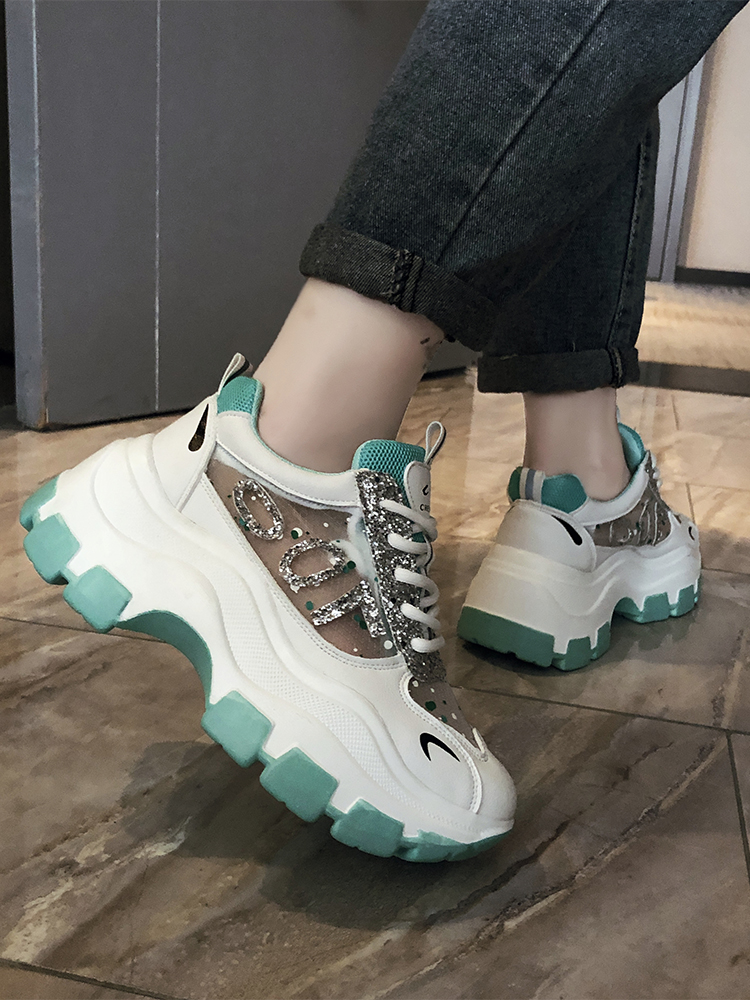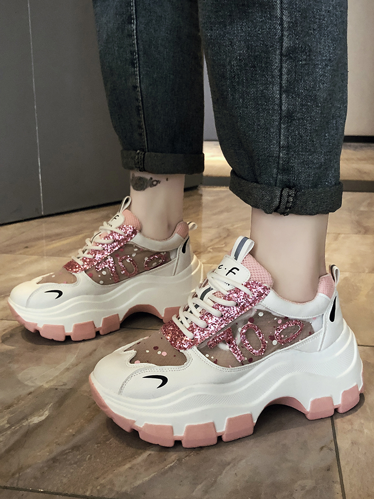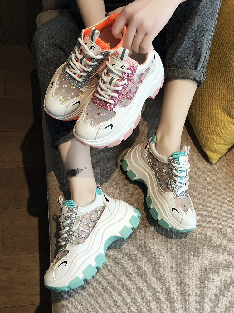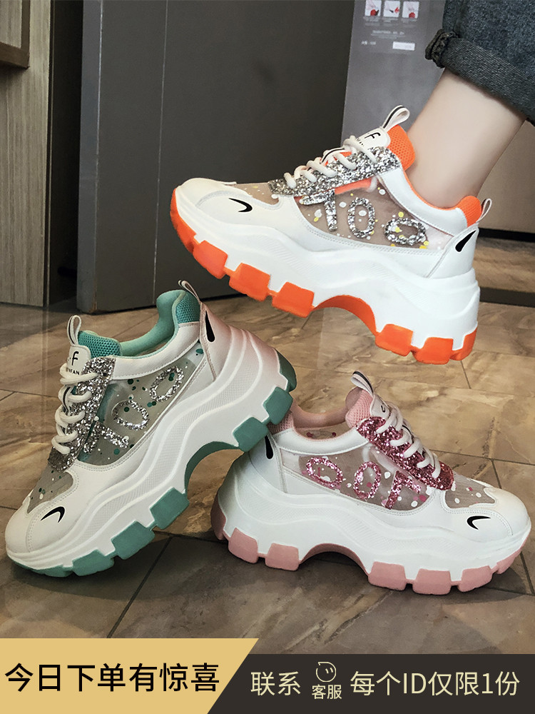 Hong Kong old shoes women's ins tide thick-soled muffin women's shoes 2022 new summer all-match breathable mesh sports shoes