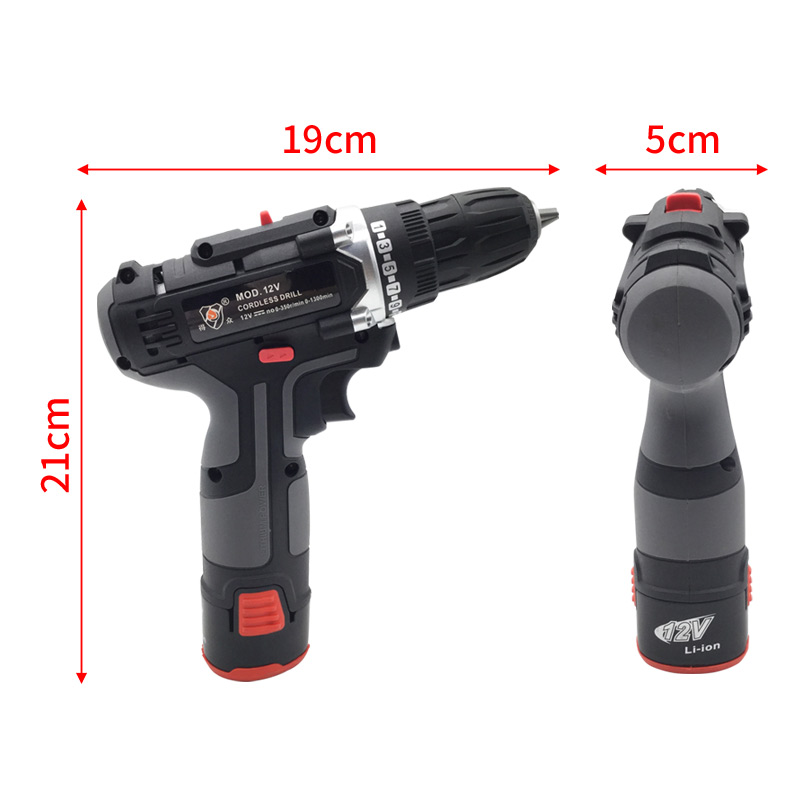 Dezhong 12V rechargeable drill two-speed lithium electric drill household electric drill high-power impact drill electric screwdriver