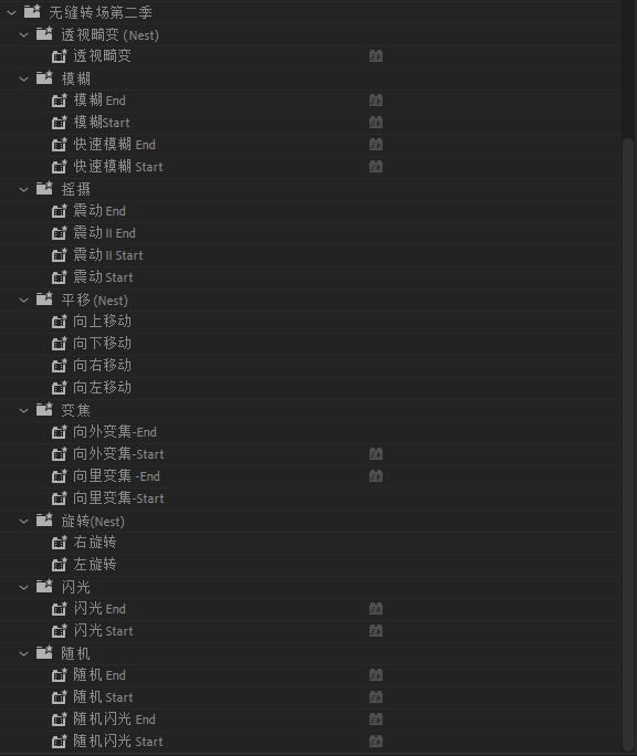 PR recommended preset plug-in seamless transitions video clips cool pop jitter sound effect material