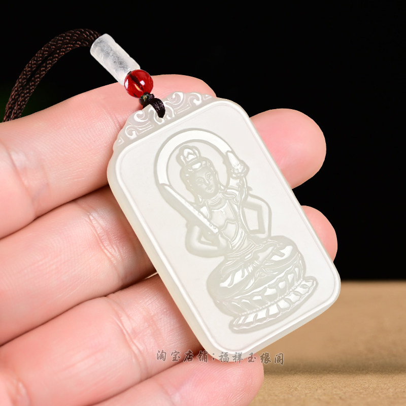Hetian jade pendant female shi er sheng xiao Natal Avalokitesvara pendant male Manjusri Samantabhadra xu kong zang patron saint
