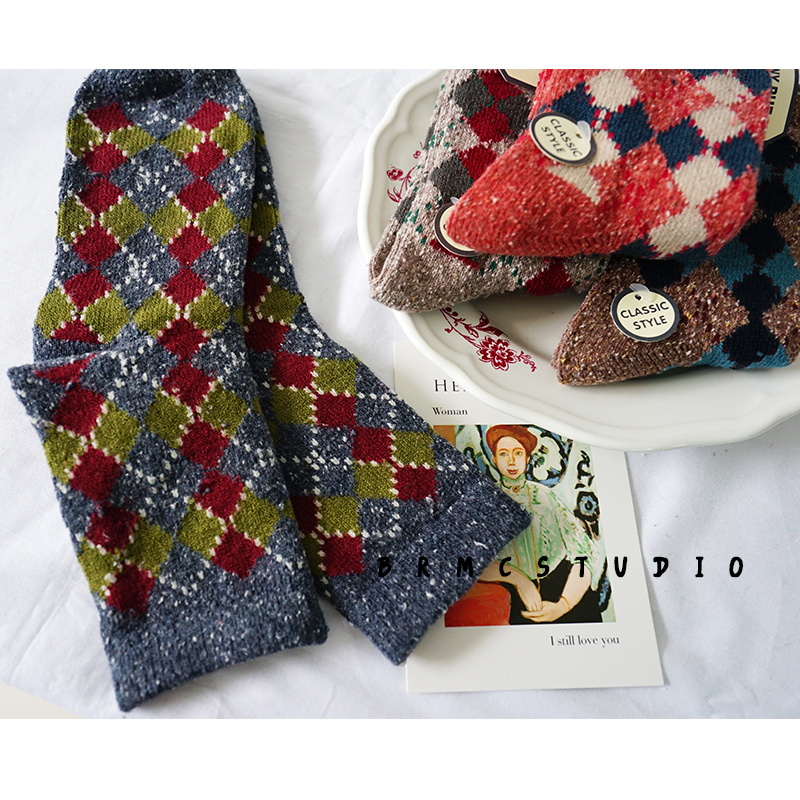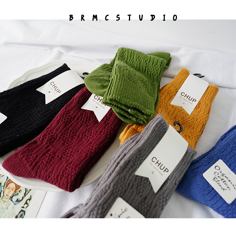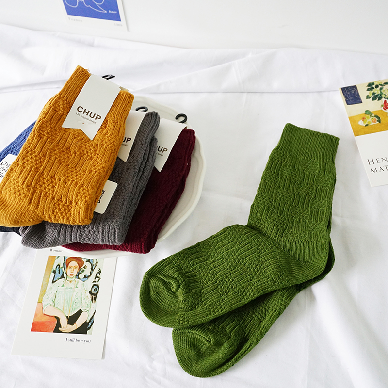 (clearance special sold out without supplement Korean version of ins solid color middle tube socks retro plaid striped socks Japanese socks women