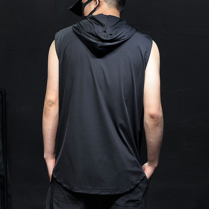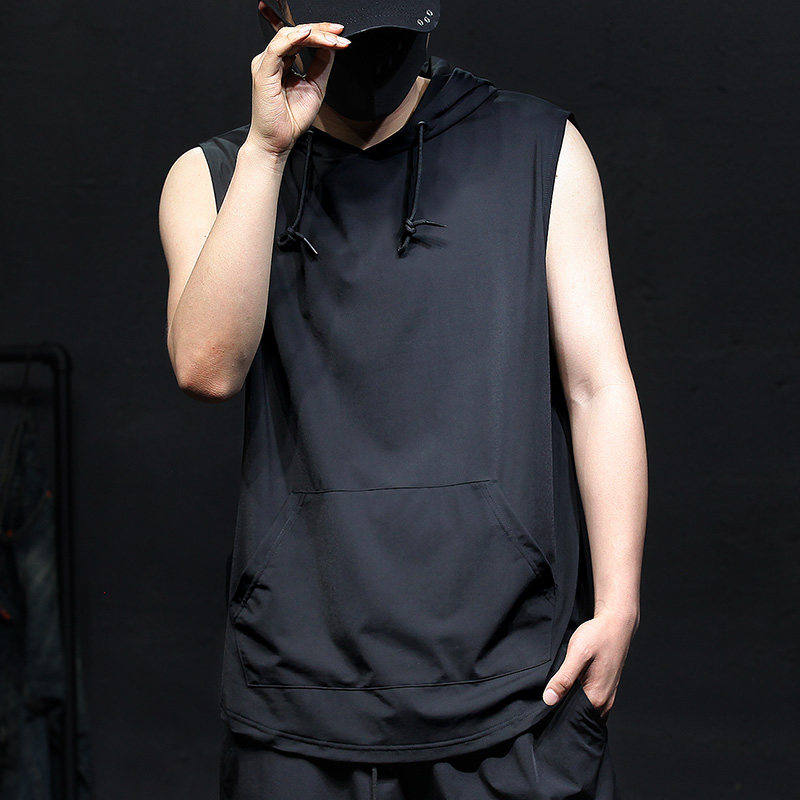 Summer Ice Silk ultra-thin sports hooded vest men loose fat increase men's sleeveless ice T-shirt waistcoat