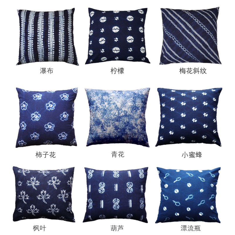 Pastoral style pillowcase cotton sofa pillow Yunnan handmade tie-dye plant blue-dyed inn homestay decoration 45cm