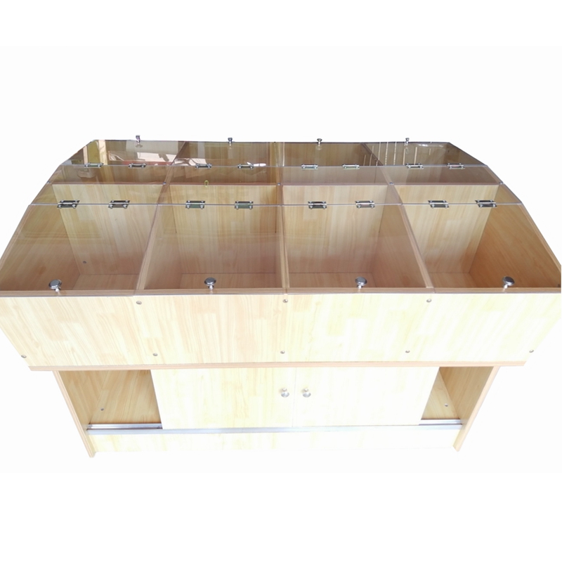 Supermarket wooden rice barrel is called snack candy dried fruit container of grain products of pharmaceutical glass display frame