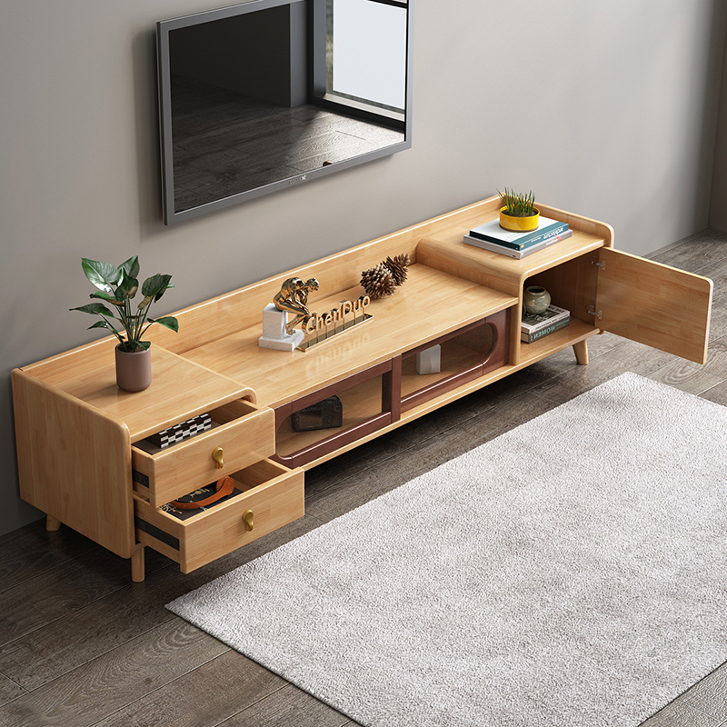 Solid wood TV cabinet modern minimalist Nordic style small apartment living room home log fashion floor cabinet video cabinet