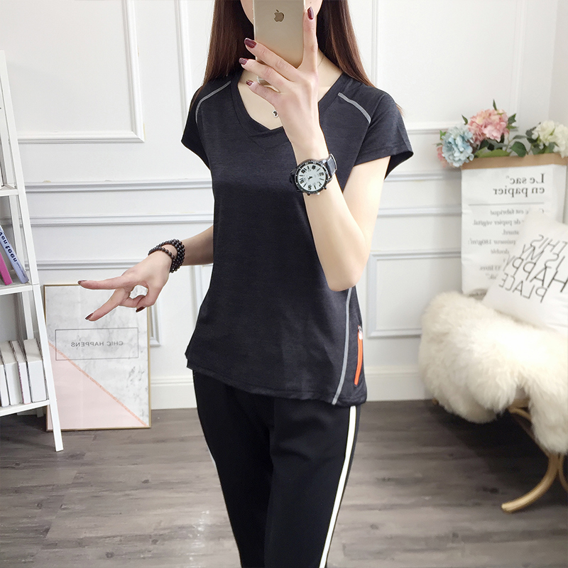 Oversized 200 pounds quick drying short-sleeved T-shirt women's spring summer gym running exercise stretch breathable slim half-sleeved shirt