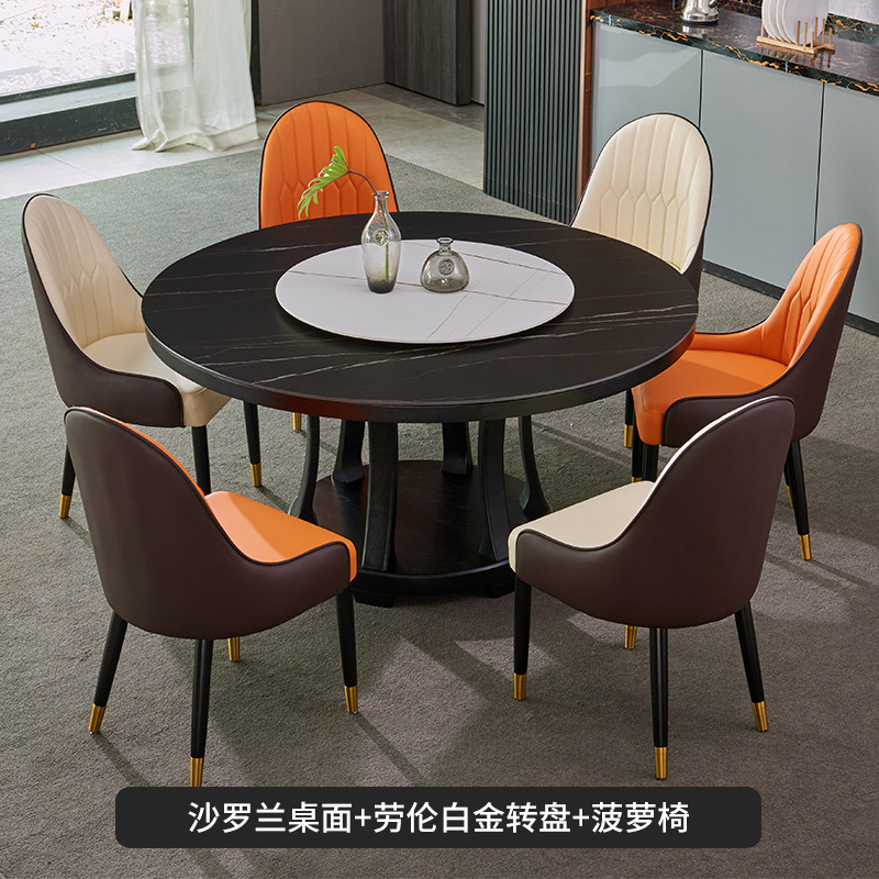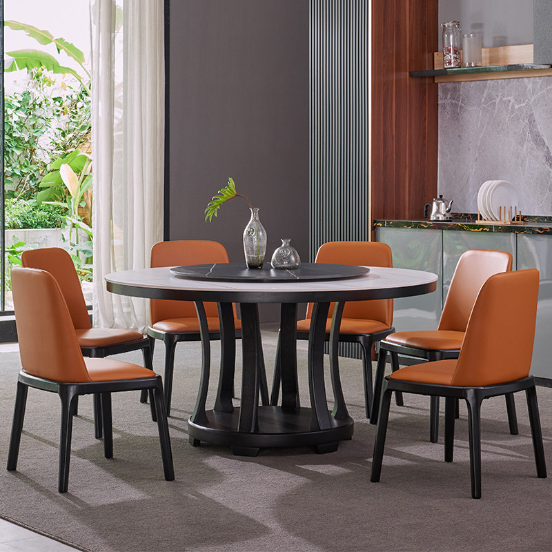 Nordic round rock board table home with turntable solid wood table Italian round table modern minimalist minimalist round table