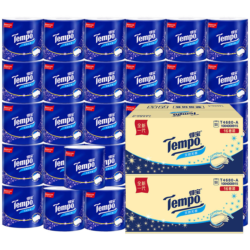 TempoTempo Cored roll toilet paper Natural non-scented 4 layers thickened 32 rolls Full box toilet paper Toilet paper Toilet paper Affordable pack