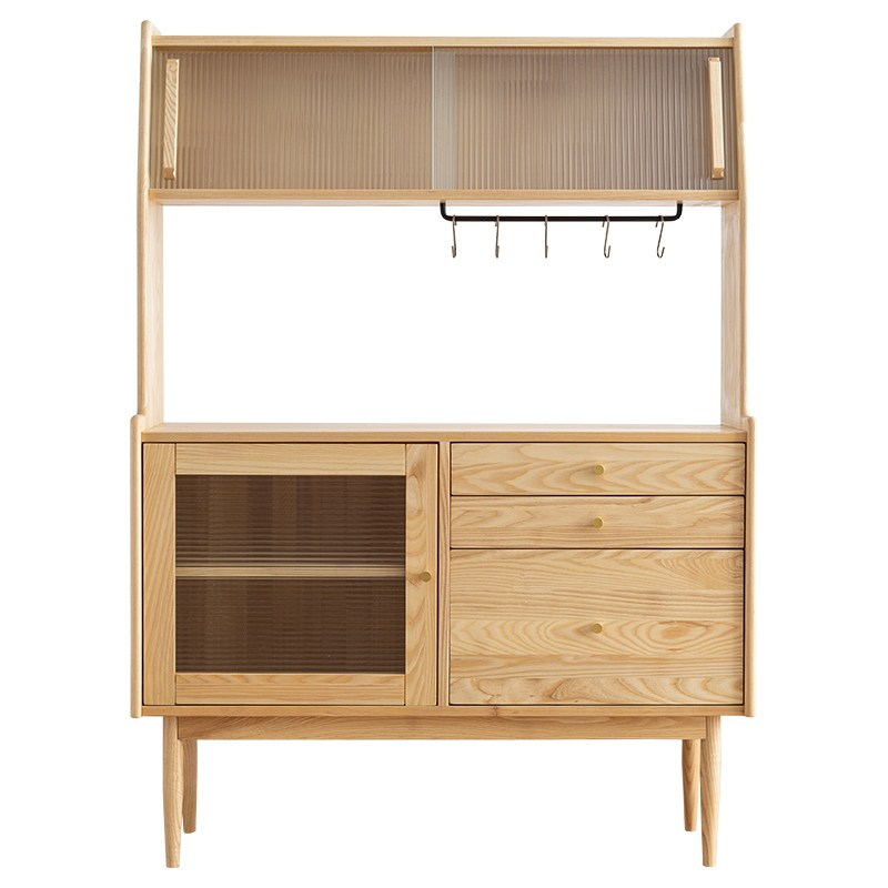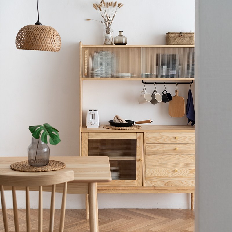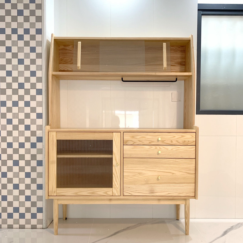 Nordic Japanese dining cabinet Household solid wood living room modern simple tea cabinet Ash wood multi-functional high storage cabinet