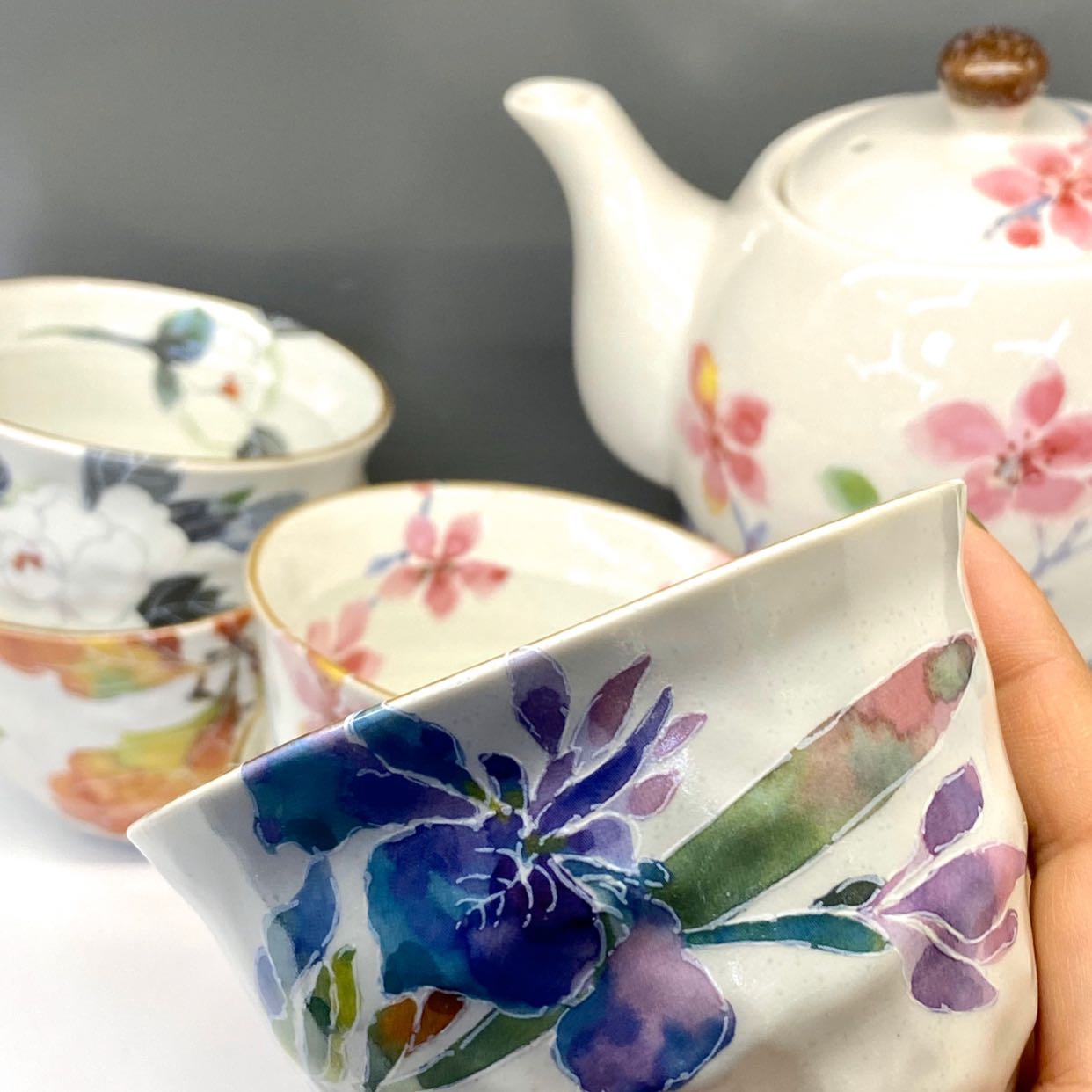 Japan imports a thick and blue flower blossom blossom teapot teapot 1 pot 5 cup set ceramic and wind tea set