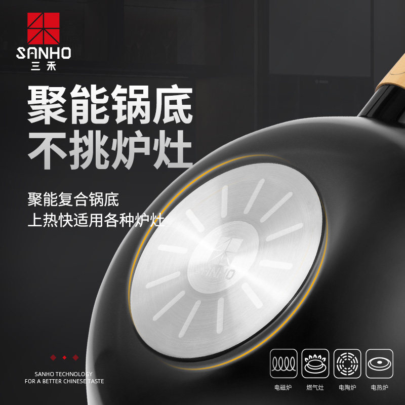 Lin Yilang recommends Sanhe pot official flagship pan non-stick pan wok household gas stove Universal