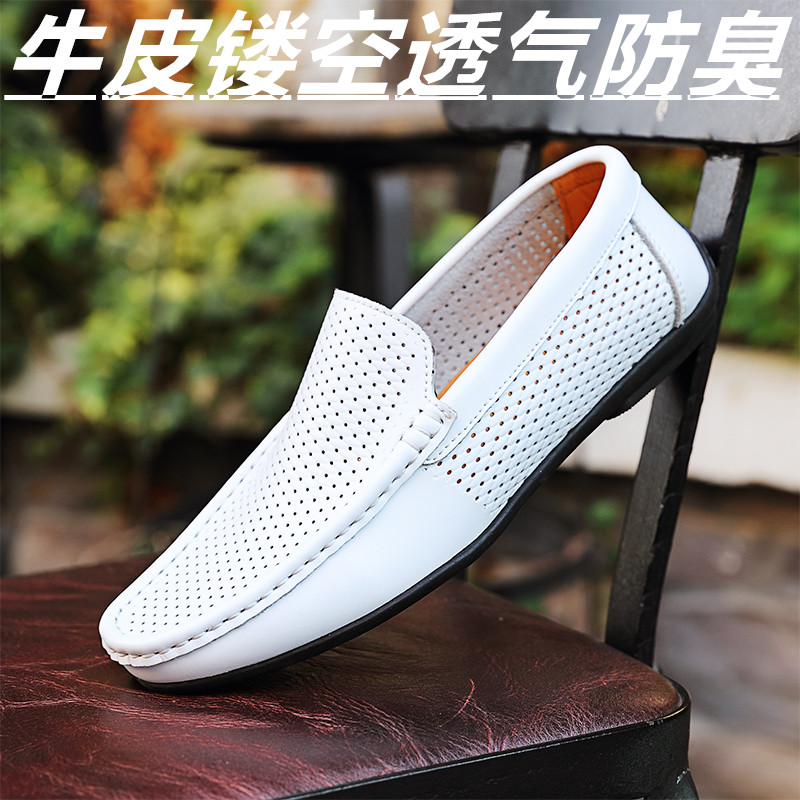 A foot pedal leather shoes man 2022 new real leather strap holes Breathable Hole Cave Sandleather Shoes Business Casual Driving Bean Bean Shoes