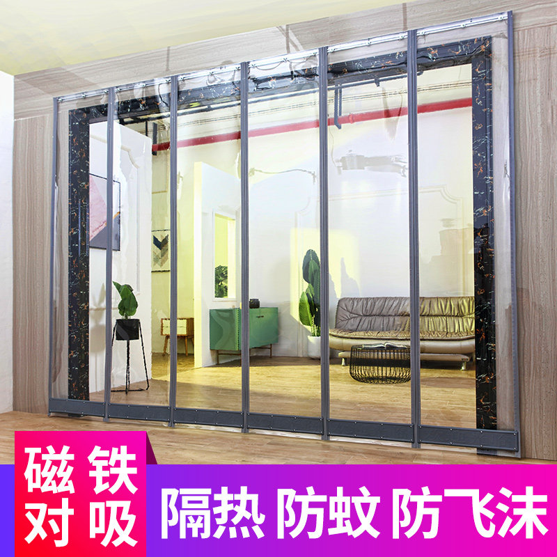 Door curtain magnet to absorb summer wind insulation home shop self-priming air conditioning transparent plastic pvc soft door partition