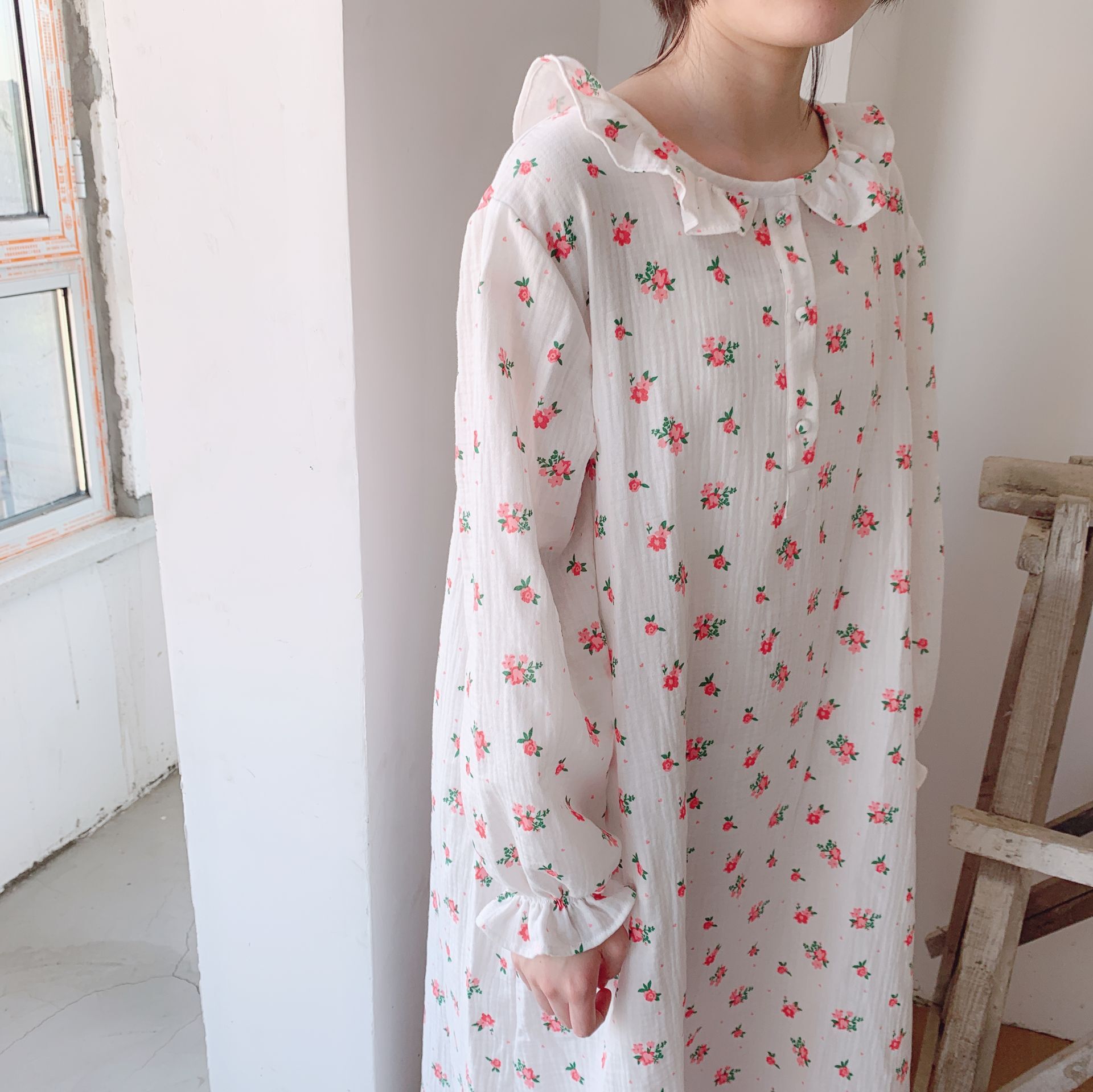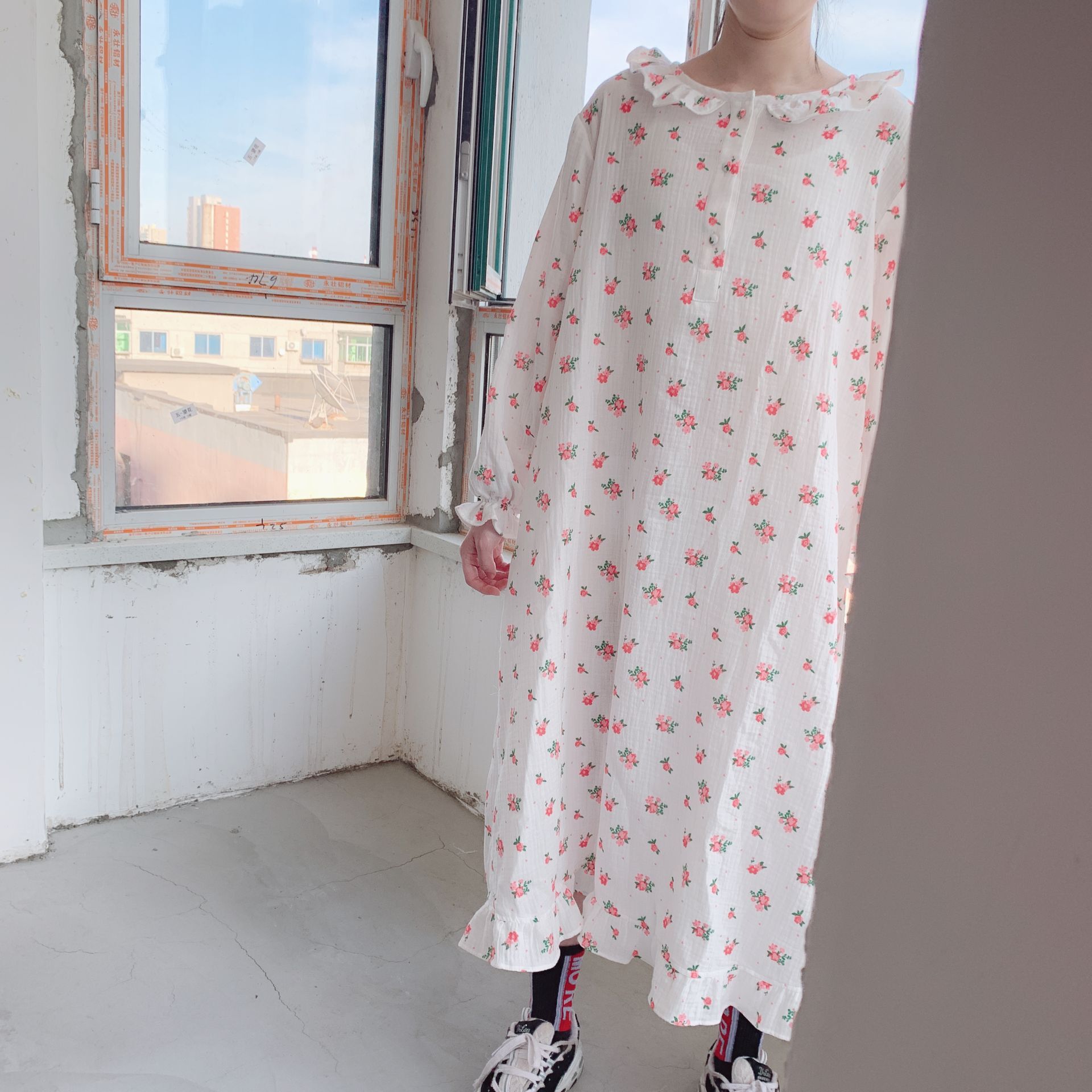 2020 spring and summer new Japanese small floral dress white small fresh girl summer pajamas skirt